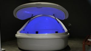 Floatation therapy also known as sensory deprivation therapy is the practice of spending an hour or more floating in a pod that contains 10 inches of constantly heated water mixed with a 1000 pounds of therapeutic grade Epsom salt. The water is so buoyant that you are floating instead of sinking. All distractions have been removed leaving you in a peaceful state of weightlessness.